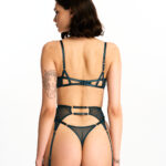 Elegantní, průsvitné a hravě smyslné — kolekce Zelená Elegance je o sebevědomí a nenuceném svádění. Braletka z jemné síťoviny v kombinaci s tangy na ultra tenkých páscích a decentními zlatými detaily rozpálí atmosféru, aniž by musela říct jediné slovo.